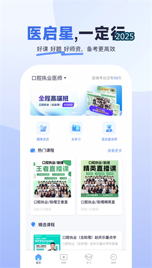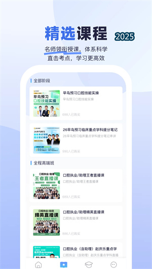 《医启星》的 “精选课程” 模块由各学科领域名师领衔授课,所有课程内容均严格紧扣最新考纲,采用体系化知识架构进行编排。课程形式涵盖考点精讲视频、直播互动串讲与重难点专题突破,确保考生能够直击考试核心。每节课程均配备完整的电子讲义(PDF) 与随堂测验题库,支持倍速播放与离线下载,方便考生随时随地利用碎片化时间进行沉浸式学习。通过将复杂的医学知识分解为逻辑清晰的知识模块,该体系有效降低了学习门槛,使备考过程更加省力、系统。