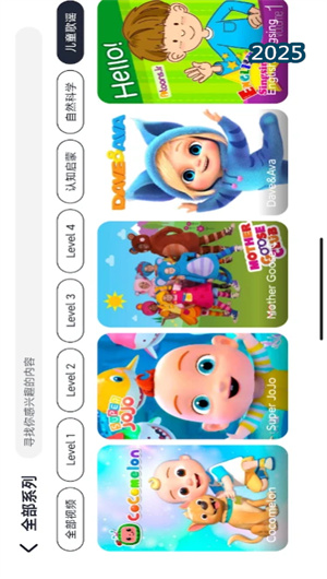 皮小猫APP的核心资源库建立在严谨的多维内容分级体系之上。所有英语动画与科普视频均依据 “认知层次” 与 “语言难度” 两个核心维度,被系统化地划分为4个清晰的学习等级。家长可以便捷地通过等级筛选器,为孩子匹配符合其当前认知与语言能力的学习材料,避免因内容过难或过易而挫伤学习积极性。资源库题材极为丰富,涵盖生活场景、自然科学、艺术素养、神话故事等多个主题板块,旨在满足孩子的好奇心,用兴趣驱动持续学习,真正做到在娱乐中自然吸收语言,开阔眼界。