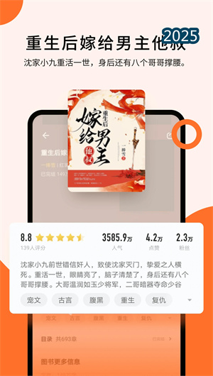 3. 多维书籍检索导航提供了强大的找书工具。用户可通过关键词全文搜索、复合标签筛选、作者专区索引等多种方式定位目标。书城首页设有新书速递专区、飙升榜、完结经典榜等不同维度的排行榜单。每本书的详情页均整合了作品信息概览、读者评分体系、章节目录预览及同好书友圈入口,帮助用户在阅读前做出充分决策。