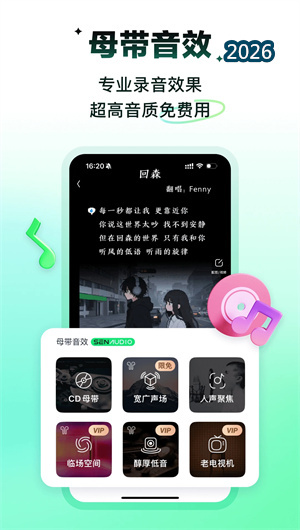 针对个人演唱体验,回森App提供了从录制到发布的全链路专业工具。其核心是源自回森专研实验室的AI音效引擎,该引擎集成了智能升降调、一键智能修音及多场景混响(如录音棚、演唱会、空灵山谷等)技术,能够自动优化人声音准、修饰音色,并匹配最佳声场环境。用户可以利用海量的新潮音乐视频模板、动态视觉特效和精美配图素材库,一键生成具备MV质感的作品。平台独有的练唱评分模式和逐句细节指导功能,则能帮助用户精准提升演唱技巧,将唱歌过程中的所有“小烦恼”转化为愉悦的创作享受。