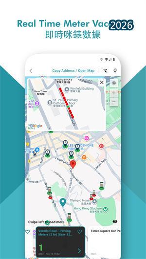 平台深度整合了香港街边咪表停车的实时状态信息与电子支付功能。用户可在地图上查看周边咪表位的占用状态,并获取其收费规则与可使用时间。选定咪表位后,可直接通过路路香港App进行远程电子缴费或购买“电子停车券”,无需准备硬币或在咪表机前排队操作。此外,App支持部分合作商业停车场的无感支付或在线预付,用户可提前购买停车时长或优惠套餐,入场时通过车牌识别自动匹配,出场时自动扣费离场,实现全程无接触的顺畅停车体验。