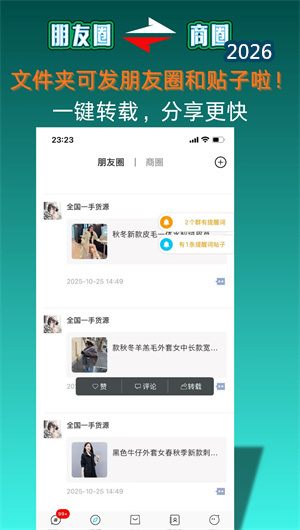 懒马客的基础是安全可靠的即时通信功能。平台采用端到端加密技术,确保所有聊天通信数据的传输与存储安全不泄露。在基础聊天之上,应用提供了强大的社交管理工具:支持 “一键转载朋友圈” ,轻松将商品、动态同步给所有好友;独创的 “群折叠与置顶折叠” 功能,允许用户将最重要的创业群或合作伙伴置顶折叠以方便查找,同时将非核心的冗余群聊折叠收纳,保持聊天界面整洁有序;更关键的是 “关键词提醒” 功能,用户可在关注的群聊或商圈帖子中设置业务关键词(如“订单”、“合作”),系统将在相关内容出现时进行即时推送,帮助用户实时掌握关键的创业与社交机会,不错过任何重要信息。