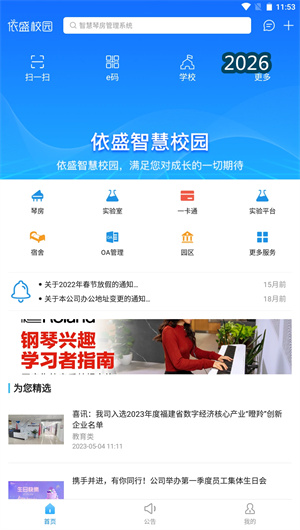 依盛校园APP是由福建依时利信息科技有限公司自主研发的科学高效智慧校园管理平台,通过云教育管理平台+智能物联终端的双核驱动,构建覆盖琴房管理、实验室管控、一卡通服务、宿舍管理、人员定位、OA办公及健康打卡的全场景智慧校园生态。平台以“为校园而生”为理念,精准契合校园管理需求,解决学生与教师沟通渠道少、消息传达不及时、学生管理不到位、校园安全防控难、教师办公繁琐等痛点。目前累计服务全国370所院校,覆盖师生超470万人,日均处理校园事务请求230万次,帮助院校平均管理效率提升41%,被教育部门评为“智慧校园建设示范案例”。