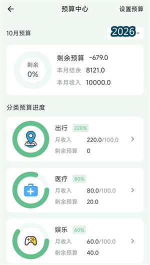 1. 预算管理与智能规划: 袋鼠记账本的预算管理功能帮助用户从源头控制支出。用户可以设置每月总预算,系统会自动将预算分配到每一天,形成每日可用额度。当某天花费超支时,系统会提示“今日已超支XX元,后续几天需节省”;当临近月底预算紧张时,会提醒“本月预算还剩XX元,还有X天”。这种智能规划,让预算不再是冰冷的数字,而是可执行的生活指南。用户还可以为不同预算分类设置独立预算,如餐饮预算2000元、购物预算1000元,系统分别跟踪执行情况。这种精细化预算,让每一分钱都花得明明白白。