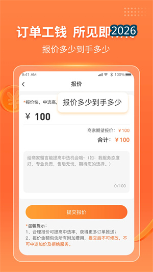 工奇兵App(简称:工奇兵)是由广西阿泰信息科技有限公司研发的一款接单找活平台,专为有技能有手艺的人群打造,让工作更自由、赚钱更轻松。用户注册后可自主选择推送的订单进行接单,涵盖安装、维修、搬运、配送、测量、跑腿、广告、保洁清洗等多品类任务,兼职专职皆可做。工奇兵整合全国合作商家140万+,服务家庭超3000万,通过实时接单系统和订单管理工具,帮助用户高效处理每一笔业务。平台支持订单跟踪处理、收入提现和售后协调,免保证金注册且不收任何费用,售后问题不罚款,保障用户权益。目前,工奇兵日均订单量突破50万单,用户满意度达92%。未来,工奇兵将持续扩展热门工种如网购订单安装、家政服务、物流运输等,为用户创造更多就业机会,推动灵活用工数字化升级。