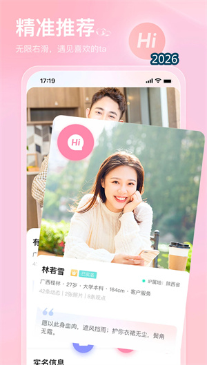 也在APP通过实名认证多角度筛选、智能推荐左滑右滑与即时聊天高效沟通三大核心引擎,将婚恋交友从“虚假泛滥”升维为“实名可靠、精准匹配”的高质量平台。平台以详细资料让了解更轻松,以婚恋问答确保三观契合,更以专业红娘实体门店提供全方位服务。当用户每天收到精准推荐,当实名认证让聊天更放心——也在守护的不仅是每天4700对成功牵手的数据,更是每一个单身男女找到真爱、走进婚姻的情感梦想。