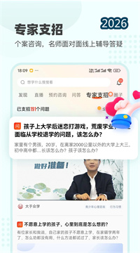 大于众学深知每个家庭面临的教育问题各不相同,因此特别设置了“专家支招”互动功能,为家长提供针对性答疑解惑服务。用户可以在平台上发布关于育儿规律、亲子关系、夫妻关系、家庭关系、学习方法、孩子培养等方面的疑惑与困扰,平台的专业导师团队将根据问题内容提供专业支招。用户每天可以利用碎片化时间浏览他人的提问与导师解答,在“看别人问题、想自己情况”的过程中持续分享、学习、成长。同时,平台内置了专业测评工具,支持年检、定检、随检等不同形式的精准诊断——年检帮助家庭进行年度教育状态全面评估,定检针对特定问题(如孩子学习动力不足)进行深度分析,随检则让家长随时可以快速了解当前教育方式的适配度。通过测评工具的精准诊断,家长能够获得针对性、定制化的授课指导与服务,让家庭教育从“凭感觉”走向“凭科学”。