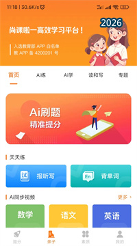 《尚课啦》是一款帮中小学生刷题提分、家长学带娃技巧、课余看素质视频的移动学习软件。