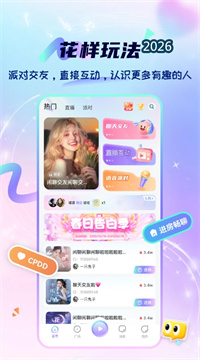 2、主题房间24小时不打烊,K歌、pia戏、相亲、电台轮换开,麦序自由抢。