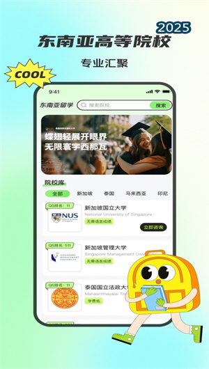 东南亚留学App凭借其多维度院校筛选、中留服认证查询、一站式留学申请和个性化留学规划等功能,成为学生实现留学梦想的得力助手。无论是院校选择、语言准备,还是签证办理、就业指导,东南亚留学App都能通过其专业的功能、独特的特色和显著的亮点,为学生提供全方位的支持。通过实时院校排名、留学社区互动和就业前景分析功能,东南亚留学App帮助学生提升留学规划效率、增强留学信心、实现职业发展目标。东南亚留学App不仅是学生的留学咨询工具,更是连接梦想与现实的桥梁。