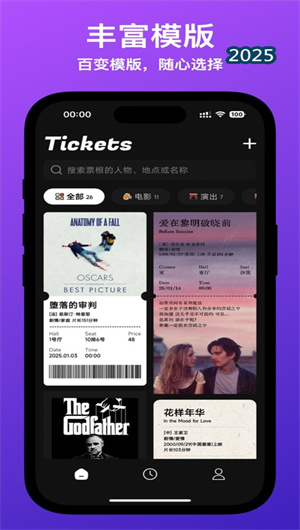 票恋App支持电影票、演出票、火车票、飞机票等多种票根类型,并采用OCR识别技术和结构化数据解析功能,自动识别并填充票面信息。用户可通过模板匹配引擎快速选择适配的票根样式,并利用动态水印生成功能增强防伪效果。此外,软件还提供时间戳校准和票号自动生成功能,确保每一张票根的时间与编号均符合真实票务标准,让生成的票根更具真实感。