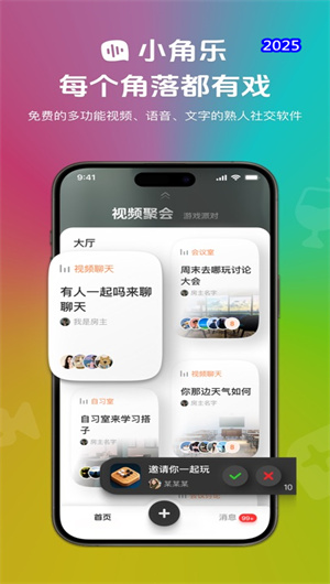 从"休闲娱乐"到"工作学习",小角乐提供针对不同场景的优化模式。"娱乐派对"增强互动趣味性,"商务会议"提升沟通效率,"学习小组"强化专注氛围。每种模式都配有专属功能套装和界面设计,满足用户多样化需求。