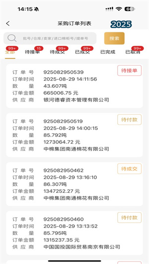1. 智能化线上交易与履约管理:汇纺源平台的核心是其强大的B2B线上现货交易大厅,支持棉花、纱线、布料等产品的挂牌、询盘、竞价和智能合约交易系统下单。买卖双方可通过一体化电子签章合同在线完成具有法律效力的签约流程。平台内置的全流程履约跟踪系统实时监控订单状态,从货款支付、货物质检到物流发货,每一个环节都清晰可溯,极大地提升了交易的可靠性和执行效率,降低了传统模式的沟通与信任成本。