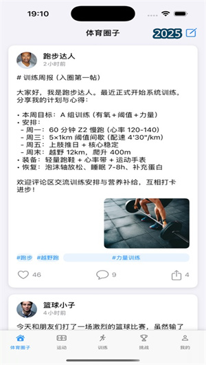 体育圈子App是一款专为户外运动与健身爱好者打造的数字化社区平台,深度融合社交互动、科学训练与健康管理功能。本应用依托多模态运动数据采集系统,精准记录用户各项训练指标,并通过智能训练负荷分析算法提供个性化反馈。平台核心构建了垂直化体育社交图谱,连接相同运动兴趣的用户,形成高活跃度的同好运动社群。同时,App集成结构化挑战任务引擎,将科学训练理念转化为趣味性十足的周期性训练计划与成就勋章体系。无论是记录一次跑步、分享健身动态、参与线上挑战还是寻找训练伙伴,体育圈子App通过运动数据可视化看板、实时社群互动频道和专业训练动作库三大支柱,为用户提供"科学训练,快乐分享"的一站式解决方案,重新定义数字化运动生活方式。