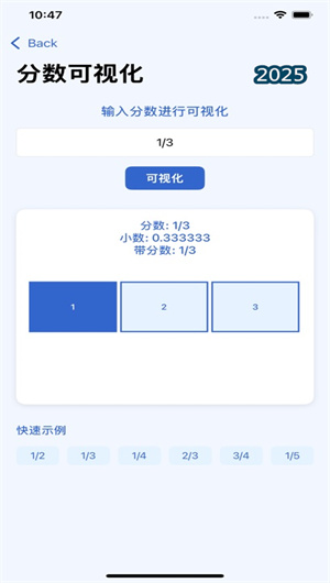 分数运算是一款基于Swift架构的专业数学学习应用,深度融合分数算法与可视化教学理念,通过动态演示系统构建直观的分数运算生态。该平台运用核心计算引擎驱动分数转换机制,实现通分约分的智能化处理,依托本地存储保障数据安全持久。分数运算整合了计算器模块、练习系统、历史记录等核心功能,通过多维度展示提供全面的学习支持,形成完整的数学学习解决方案。软件采用原生开发确保系统流畅性,配合界面优化提升操作体验,为iOS用户提供从基础运算到进阶理解的一体化服务,真正实现数学思维的培养价值。