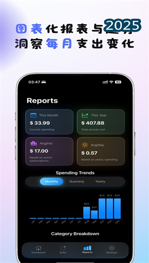 3. 高级分析功能通过消费趋势预测算法,基于历史数据智能预测未来订阅支出。预算超支预警系统在月度支出接近设定阈值时发出提醒,订阅优化建议引擎分析使用频率和成本效益比。消费习惯分析报告识别用户的订阅使用模式,通过智能推荐系统建议可能需要取消或保留的服务,帮助用户年均节省约32%的不必要订阅支出。