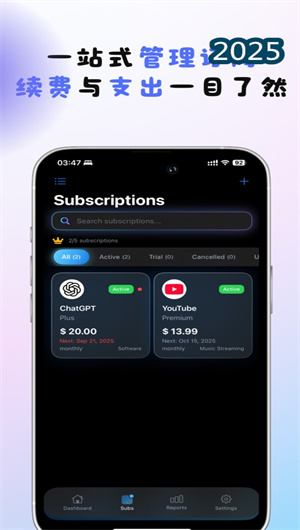 1. 智能订阅追踪系统通过订阅状态监控面板实时更新每个服务的状态信息,包括在用服务、试用状态和已取消订阅的全生命周期管理。系统内置的订阅模板库支持快速添加常见服务,自动计费周期计算器准确识别月付、季付、年付等不同计费模式,而试用期倒计时功能则在试用到期前发出特别提醒。订阅关系图谱直观展示各服务间的关联性,通过智能分类引擎将订阅服务按类型自动归类,大幅提升管理效率。