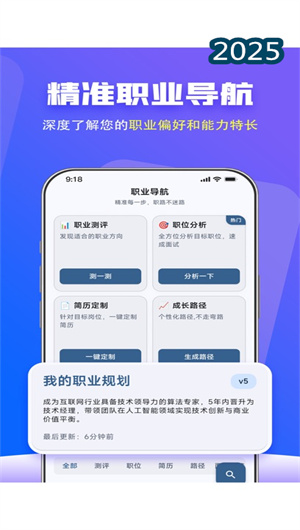 职路APP通过创新的人工智能技术和专业的职业发展方法论,为用户打造了全方位的职业成长平台。智能化的测评系统与个性化的规划服务相结合,帮助用户精准定位职业方向,优化发展路径。持续的技术升级和服务优化,使平台始终保持行业领先水平。未来,我们将继续深化AI技术应用,拓展服务领域,完善生态系统,为更多职场人士提供更加精准、高效的专业服务,助力每一位用户实现职业理想,让职业发展之路更加顺畅光明。