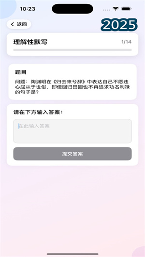 2. 多维题目训练:提供理解性默写、加点字解释、选择题等多样化题型训练,每道题目均标注考查的知识点类型与难度等级。系统根据用户学习进度智能推送针对性练习,自动记录错题并生成专属错题本。题目解析详细说明解题思路与相关知识点链接,帮助用户巩固薄弱环节,构建完整的知识网络。