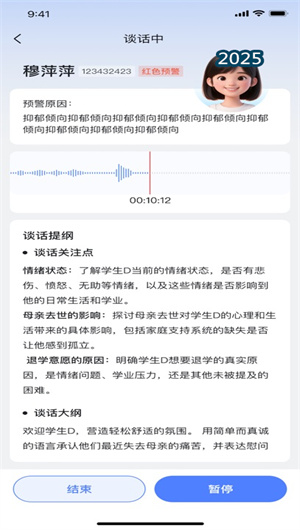 应用致力于为每一位学生构建一份学生全周期心理健康档案。这份电子档案持续记录学生从入学到毕业的所有相关心理数据、预警记录及干预措施。它不仅服务于当下的危机处理,更是一份宝贵的成长轨迹资料,为长期追踪学生的心理发展变化、评估干预效果以及进行回溯性研究提供了完整的数据支持。此功能将分散的个案信息系统化,形成了可长期利用的心理资本。