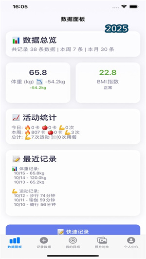 身材蜕变记是一款专为健身爱好者与严谨的身材管理者量身打造的专业级健身记录应用。它构建了一个集身材多维追踪、运动数据记录与饮食计划管理于一体的综合性个人健康管理平台。该应用的核心使命是解决健身过程中“进步看不见、努力难量化”的痛点,通过科学的数据量化体系与直观的视觉反馈机制,将抽象的努力转化为具体的图表与图像。无论是减脂期的精细控制,还是增肌期的力量突破,身材蜕变记都能通过其强大的数据看板和标志性的照片对比功能,为用户提供一个清晰、客观的进步评估视角。它不仅是记录工具,更是激励用户持续前行的伙伴,真正实现了“让每一次改变都有迹可循,让每一个目标都触手可及”的产品理念。