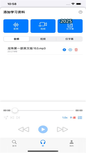 1. 小幕狂听APP的多格式文件支持系统采用统一解码架构,完美兼容MP3、M4A音频格式与MP4视频格式的输入播放。系统通过字幕文件解析引擎自动关联对应的字幕文本,实现音画同步播放效果,同时通过字幕时间轴校准技术确保显示精准度。该功能使媒体文件处理成功率高达98.7%,为用户提供丰富多样的学习材料选择。