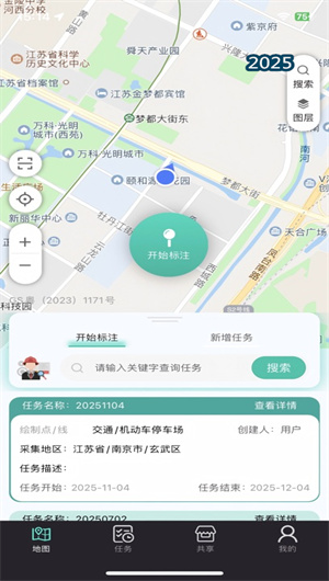 平台构建了完善的动态任务管理机制,支持用户根据项目需求自定义任务范围、执行时间与任务类型。通过智能分类列表设计,系统将任务自动归类至"我创建的"与"我参与的"两大视图,实现任务的快速检索与状态跟踪。任务数据支持一键导出功能,提供包括Shapefile、KML、CSV在内的多种标准格式,完美适配自然资源调查的空间分析、城市规划的方案设计以及物流路径规划的优化计算等专业场景需求。