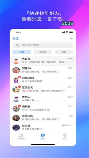 1. 今日投研APP的核心功能在于其强大的社交IM系统与高效的联系人管理模块。用户可以通过即时聊天功能与好友或合作伙伴进行一对一或群组沟通,支持富媒体消息(如图表、文件)的实时传输,确保投资观点与市场线索能够快速同步。同时,平台与手机通讯录无缝对接,提供智能的好友推荐功能,帮助用户轻松构建和管理自己的投资社交圈,确保关键人脉不错过,重要信息不遗漏。