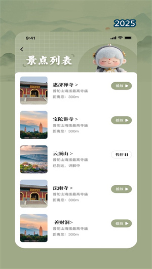 2. 文化IP语音对话交互:软件的核心特色之一是其强大的语音对话引擎,它塑造了一位独具魅力的“普陀山文化使者”作为AI虚拟角色。用户通过简单的语音唤醒指令即可激活此功能,与之进行自然语义理解层面的深度交流。无论是查询景点背后的历史典故、询问实时天气,还是进行开放领域的智能闲聊,该引擎都能凭借其深度学习模型生成富有文化底蕴和人情味的回复。这种多轮对话能力确保了交互的连续性与自然度,极大地丰富了用户的游览体验。