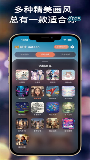 2. 专业化画风引擎与动态风格库管理:应用内置一个持续更新的 “顶级画风矩阵” ,目前已集成超过16种各具特色的专业级漫画风格。每种风格均由独立的神经网络风格迁移模型驱动,能够深度模拟并应用目标画风的精髓。例如,选择 “经典日漫风格” ,系统会应用网点纸纹理模拟、速度线特效及标志性的黑白灰关系处理;选择 “韩系条漫风格” ,则会生成符合纵向滚动阅读习惯的长条画幅,并应用高明度色彩填充与渐变光影效果。用户可以在生成前后随时切换并预览不同风格,甚至进行局部画风融合,为创作提供了极大的自由度和表现力。