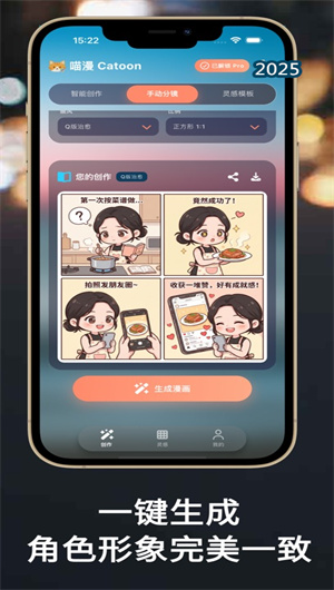 喵漫App是一款深度融合人工智能生成技术与专业漫画创作流程的智能化内容创作平台,致力于通过先进的AIGC引擎让每一位用户都能轻松实现从创意到可视化漫画作品的转化。本应用基于多模态大语言模型与计算机视觉风格迁移技术,构建了从文字故事输入到多格漫画成品的自动化生成链路。系统采用 “照片转漫画” 与 “文本转分镜” 双核心驱动模式,支持超过16种顶级画风库的智能适配,旨在彻底打破传统漫画创作在绘画基础与分镜设计方面的专业壁垒。应用严格遵循视觉叙事逻辑,帮助用户将生活中的精彩瞬间、脑中的幻想故事,轻松转化为具有专业感的二次元漫画,真正实现 “成为自己的漫画家” 的创作梦想。