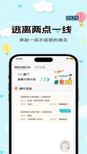 2. 多人协同编辑与全链路财务管理:针对多人出行的核心痛点,应用提供了完善的 “团队协作空间” 。行程创建者可以邀请同行人加入,所有成员均获得实时编辑权限,可同步修改行程、添加备注、投票选择备选方案,避免了传统群聊中信息杂乱、决策低效的问题。在财务管理方面,应用支持在行程规划阶段预设 “总预算” 及分项预算。旅途中,任何成员均可通过 “闪电记账” 功能,快速记录每一笔支出,并选择费用分类(交通、餐饮、住宿等)和支付人,系统自动计算人均分摊并实时更新预算达成进度条。旅程结束后,一键生成清晰的 “旅行费用报告” ,谁该给谁多少钱一目了然,将AA制结算的纠纷可能性降低了80%。