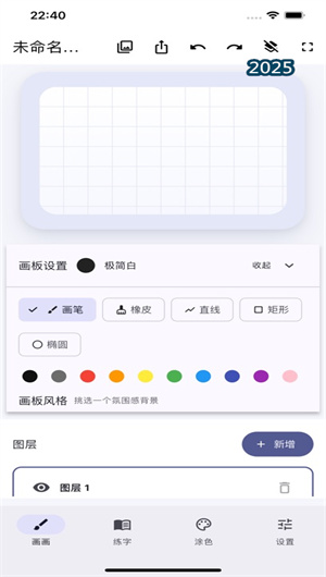 2. 专业级图层系统与高效画布管理:为支持复杂作品的创作,应用提供了完整的图层管理系统。用户可以新增、删除、重命名多个图层,并独立调整每个图层的透明度,实现灵活的叠加与组合效果。独特的 “随时清空当前层” 功能,允许用户在不影响其他图层的情况下快速重置当前绘制,极大地提升了修改效率。结合撤销重做功能(支持多步历史),构成了一个稳定可靠的专业绘画工作流,满足了从简单涂鸦到多层插画创作的全方位需求。
