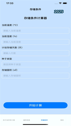 基于种子的生物学特性,应用提供了科学的种子存储建议生成功能。用户输入或从数据库中选择种子作物种类、初始含水量、初始发芽率等关键信息后,系统将调用种子衰老模型与存储响应数据库,综合分析后给出最优的存储温度区间、相对湿度范围及包装材料建议。更为进阶的是其种子寿命预测模块,它能根据不同存储条件下的种子劣变速率,模拟预测种子在未来6个月至5年内的发芽率衰减曲线,为用户制定采购与存储计划提供关键数据支持。