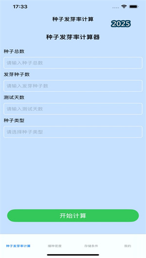 除了发芽率,应用集成了专业的种子密度计算模块。该模块允许用户输入千粒重或百粒重数据,结合种子的净度信息,通过密度换算算法精确计算出每克或每公斤种子的理论粒数。进一步,用户可设定目标种植面积与预期株距行距,系统将利用播种量优化模型,自动推荐最经济的亩播种量或单位面积用种量,并计算出对应的种子成本预估。此功能将实验室数据与田间生产实际紧密连接,实现了从检验到应用的闭环。