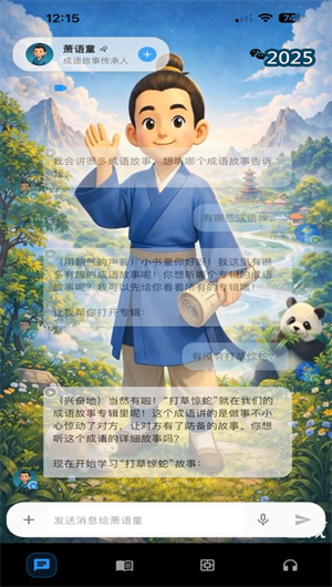 3. 智能化伴学与评估体系:虚拟学习伙伴“萧语童”作为核心的AI伴学引擎,贯穿整个学习旅程。她不仅能以亲切的语音引导孩子进入成语故事世界,还能在游戏环节进行启发式提问,在复习阶段发起随机抽测对话。基于孩子的学习行为数据,系统会生成个性化的成语掌握度图谱,清晰展示已熟练掌握、需加强理解及尚未接触的成语分布,并智能推荐下一步的学习路径与内容,实现真正的因材施教。