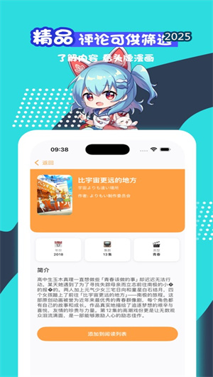 3. 结构化阅读列表与智能发现引擎:应用的“阅读列表”功能是其核心管理界面。所有被添加的作品都会根据用户设置的分类和当前阅读进度,在阅读列表中形成清晰的任务流或收藏流视图。用户一眼就能看出接下来该看什么,哪些作品快要完结。与列表相辅相成的是“百科”发现页面,它基于用户的评分历史、浏览记录和社区热度,通过算法推荐引擎源源不断地为用户推送可能感兴趣的杰作,并提供官方简介、社区评分和短评预览,帮助用户不断拓宽自己的动漫视野。