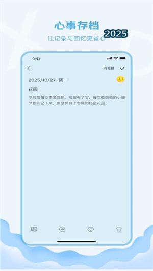 暗恋日记通过其坚不可摧的隐私堡垒、充满巧思的情感记录工具以及温暖中立的陪伴者定位,在数字世界中开辟了一片独一无二的情感净土。它尊重每一份暗恋的独特性与私密性,用科技的力量守护最柔软的心事,将一个人的兵荒马乱,梳理成可供珍藏的青春诗篇。在这里,没有对错的评判,只有温柔的接纳;没有外界的喧嚣,只有内心的回响。它让暗恋这件小事,得以以一种健康、安全且充满自我觉察的方式被安放和体验。未来,暗恋日记将继续专注于深化本地化智能分析、丰富正向的情感引导工具,并坚守其隐私至上的核心承诺。立即下载,为你心中那份美好而隐秘的情感,建立一个专属的、安全的、温暖的数字家园,让每一次心跳的痕迹,都被岁月温柔以待。