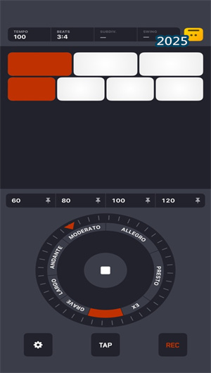 很不节拍器的核心是它的高级节拍引擎,该引擎支持从20到300 BPM的宽广速度范围,并具备业界领先的“细分节奏”功能,允许用户将每拍细分为多达12个等份,为演奏复杂节奏型(如三连音、五连音)提供精准的听觉参考。其“Swing节奏”算法提供可调节的摇摆强度,模拟从传统爵士到现代电子乐的多种律动感。而“复合节奏”功能则能同时运行两个不同速度或拍号的节拍流,完美解决多节奏声部同步练习的难题。用户可通过直观的“点按设定节奏”界面手动敲击出目标速度,或使用“演奏同步录制节拍点击音”功能,将自己的演奏录音与节拍器点击声混合导出,进行细致的节奏对标分析。