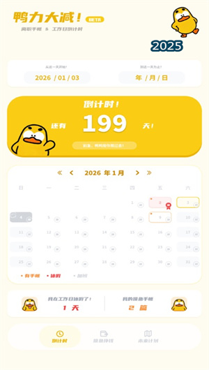 鸭力大减APP是一款专为现代职场人设计,以“离职倒计时”为核心场景的情绪管理与目标可视化工具。该应用通过Q萌视觉化设计与硬核逻辑算法的独特结合,将用户从决定离职到最终“毕业日”的整个过渡期,转化为一段充满掌控感与期待感的积极旅程。平台以 “离职进度管理” 为核心框架,集成了智能工作日过滤引擎、情感记录手帐本、薪酬趣味化计量系统及离职决策支持模型四大功能模块,旨在帮助用户在职场转换的关键时期,有效管理时间、宣泄情绪、重构认知并规划未来。自上线以来,已成为超过50万“准离职者”的陪伴伙伴,其核心的工作日倒计时准确率高达99.8%,成功将焦虑的煎熬转化为奔向自由的积极倒数。