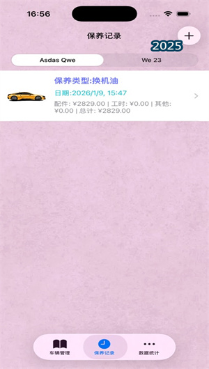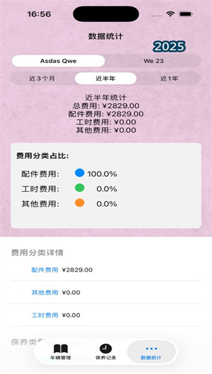 2. 以车辆为中心的全生命周期数据关联与可视化时间轴打造了连贯的车辆“健康史”。应用将所有零散的维保记录、费用单据、加油记录(可选)、事故维修记录等,全部整合到以每辆车为核心的 “生命周期时间轴” 上。用户滚动时间轴,即可像翻阅历史书一样,清晰看到车辆在何时、何地、进行了何种养护、花费多少。这种全局视图不仅方便快速回顾,更能帮助用户或二手车买家、维修技师理解车辆的整体养护水平与历史,对于判断车况、评估价值具有至关重要的参考意义,将车辆管理从“记账”升级为“资产管理”。