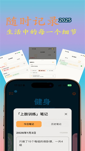 3. 情境化提醒与记录体系包含一个高度自定义的智能提醒系统,用户可为每个目标单独设置提醒时间、重复规则甚至添加地点触发条件。更独特的是目标笔记关联功能,用户可在每次打卡时附加文字、图片或语音笔记,记录当时的情境、感受或突破,这些笔记与打卡数据绑定,未来在时间线回顾或趋势分析时,能提供丰富的情境记忆锚点,使冰冷的统计数据充满鲜活的故事性。