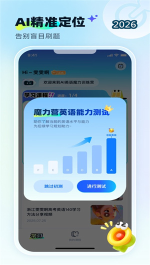 魔法听力训练模块依托平台积累的海量真实作答数据库,通过大数据错题分析模型精准定位不同学段学生在短对话、长对话、独白等题型中的高频易错考点。系统为每个易错点配备了名师精讲微课视频与专项微技能练习题,深入剖析错误背后的听力障碍。基于个性化错题画像,智能推送引擎会动态生成错题同类题强化包,确保学生能够举一反三、巩固薄弱环节。每次练习结束后生成的听力能力雷达图,直观展示学生在主旨理解、细节捕捉、推理判断等分项技能上的进步轨迹。