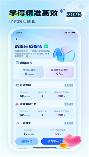 天学网AI App打破了学习管理孤岛,构建了学生-教师-家长三方协同空间。教师可通过班级学情管理后台一键布置分层作业,并查看全班的共性错题分析以调整教学重点。家长在家庭守护端可以收到孩子完成学习的温馨提醒,以及经过教育心理学优化的正向激励建议话术,而非简单的分数通报。学生的重要成长瞬间,如首次完成长篇朗读、在口语对话中获得A+评价等,都会自动生成学习成就卡片并分享至协同空间,共同营造关注过程、鼓励进步的积极学习生态。