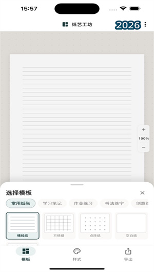 纸艺工坊最显著的特色在于其高度垂直与专业化的定位。它并未试图成为一个泛用的文档或绘图应用,而是精准切入 “功能性实体纸张的数字化替代与增强” 这一细分领域。通过系统性地收集、设计并数字化那些在特定场景下能显著提升效率的纸张(如康奈尔笔记纸提升知识消化效率,各类书法格规范字体结构),它构建了一个市面上稀缺的 “专业数字纸品矩阵” 。这种垂直深耕使其在模板的专业性、准确性与场景覆盖度上,远超通用软件的简单画布功能。