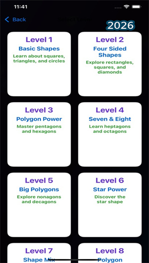 1. 层级学习模式采用分阶知识递进架构,20个结构化教学关卡按照形状复杂度、属性维度、认知负荷等参数进行科学分级。每个关卡聚焦特定几何形状集合的引入与强化,用户需通过形状辨识测验与属性匹配挑战获取关卡积分,系统设置70%的通关阈值线作为掌握度基准。完成当前关卡后自动解锁下一学习层级,关卡间通过知识衔接算法确保概念的自然过渡,所有关卡数据同步至个人学习档案形成完整的几何认知发展图谱。系统特别设计的防退步机制会在用户连续失败时触发适应性复习模块,确保基础概念的牢固掌握。
