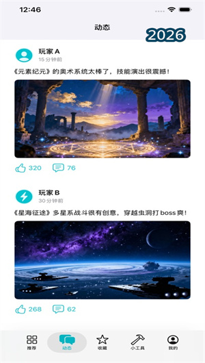 3. 社交发现功能创建动态游戏社区,用户可选择公开自己的在玩游戏状态、近期收藏记录、游戏评分动态,在社群动态流中浏览其他玩家的真实游戏动态。系统通过兴趣圈层算法优先展示与用户品味相似的同好玩家动态,并高亮显示高影响力玩家的深度推荐。用户可对动态进行点赞互动或加入讨论,所有社交行为均以游戏为核心,避免无关干扰。社群产生的集体智慧数据将反哺推荐系统,形成用户驱动的内容发现生态,社群活跃用户的新游戏尝试率比孤立用户高58%。