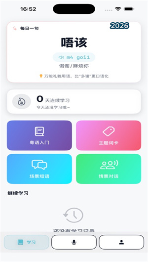 粤流利是一款专为粤语学习者设计的智能化、沉浸式语言习得应用,致力于通过科学的教学体系和前沿的技术手段,帮助用户从零开始系统掌握地道广东话。应用构建了一个完整的粤语学习路径导航,融合了标准音素发音库、情景化对话模拟引擎与自适应练习算法三大核心模块,打造了从语音基础到实际运用的闭环学习体验。用户可通过智能语音评测系统进行跟读练习,实时获得发音准确性反馈;在涵盖日常交流、购物、餐饮等多元场景的情景对话模块中进行角色扮演与互动学习。应用内集成了按主题分类的结构化词汇数据库,并配备多模态记忆工具辅助高效积累。同时,个人学习数据中心会全程记录学习轨迹与成果,提供个性化进度报告。粤流利旨在打破地域与时间限制,以清晰的学习路径、地道的语言内容和灵活的学习模式,成为每位粤语爱好者身边专业、贴心且有效的数字化粤语导师。