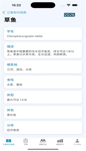 江鱼知识指南App是一款集专业性、工具性与社区性于一体的综合性淡水鱼类研究与垂钓日志应用。它致力于构建一个系统化的淡水鱼类数字百科全书,为用户提供从物种鉴别、生态习性学习到个人垂钓经历记录的完整解决方案。应用核心由两大模块构成:一是基于权威生物学分类与实地数据整合的江鱼物种数据库,内含数百种淡水鱼类的精细三维模型、高清图鉴、生态特征与分布图谱;二是功能强大的个人垂钓日志系统,允许用户结构化地记录每一次出钓的渔获、环境参数与行为观察。通过先进的数据可视化引擎,应用能将零散的记录转化为直观的统计图表与趋势分析。江鱼知识指南App不仅是钓鱼爱好者提升认知、记录成长的得力助手,更是自然观察者、学生及研究者深入了解淡水鱼类生态的便携式智能知识门户,旨在将专业的鱼类学知识与个人的亲水乐趣深度融合。