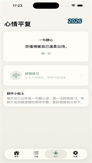 人生课题重塑APP内置接纳主题冥想,针对“原谅自己”“放下过去”“与遗憾共存”等场景,提供引导音频。呼吸练习帮助在情绪波动时快速平复,练习后可标记情绪变化,系统记录“从7分焦虑降至3分”的进步轨迹。